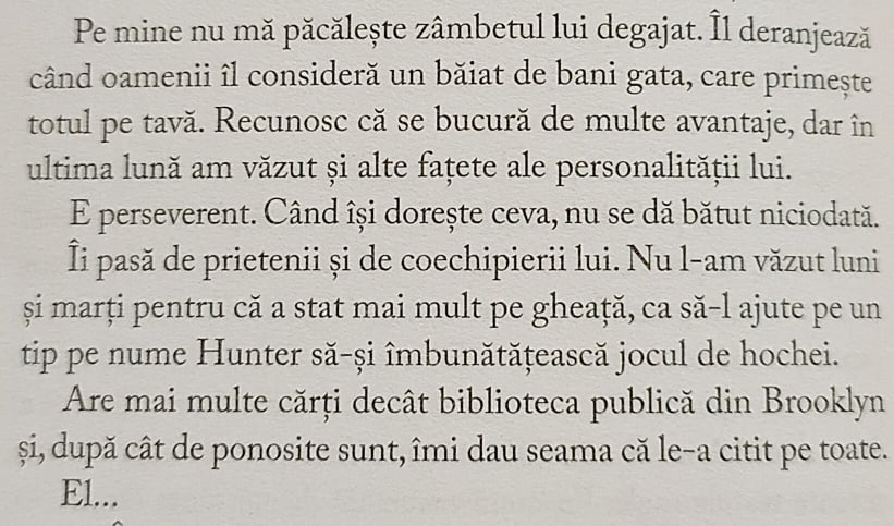 Așa că da, dragilor, vă recomand seria Off-Campus, în special acest volum căruia vă îndemn să îi acordați o atenție deosebită, doar nu vreți un Dean Di Laurentis supărat, nu-i așa? Și până la urmă, cine nu ar vrea să facă cunoștință cu cei mai cunoscuți jucători de hochei de la Briar?